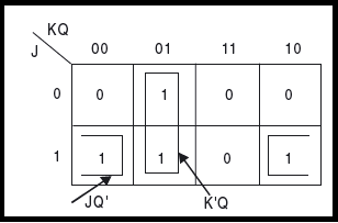 Now from this above Karnaugh map we get the relation D = JQ^ + K^Q.