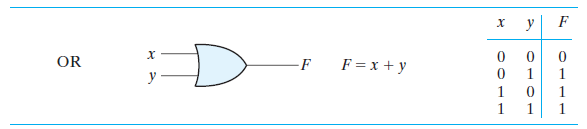 OR gate: OR gate is used for doing OR / Addition of input signals and generates output accordingly. In bellow see the Graphic symbol, Algebraic function, Truth table Of OR gate. From the truth table you can see that the output is generated by adding both inputs.
